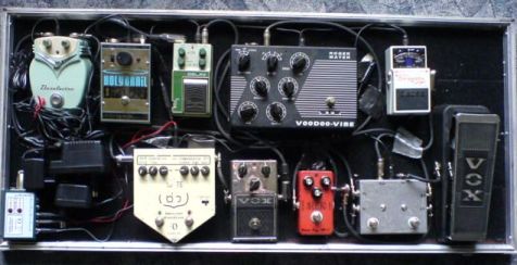 ich habe ja neulich in Rollis Von wegen Frust... Thread behauptet, momentan (...) auch etwas GAS geheilt zu sein. Das will ich nun auch keineswegs widerrufen, sondern möchte nur kurz meine überarbeiteten Stressbretter vorstellen. Stressbretter deshalb, weil ich mir den Luxus erlaube, je nach Band bzw. Lust auf Schlepperei verschiedene Setups mitzunehmen. In der Praxis sah das so aus, dass ich in meiner Hardrock Kapelle ein kleines Brett dabei hatte: