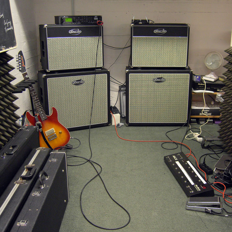 Auf den Atomics links steht eine Axe-FX Ultra, die oberen Atomics sind die 1x12"/50 Watter, die darunter sind die 2x12"/50 Watter.