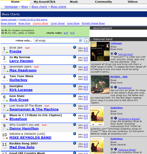 in den Blues Rock Charts bin ich nun auf Platz #1 (von 8.496 Songs). Yuchuuu!