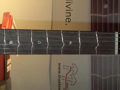 Mehr Infos dazu hier, bei True Temperament. Ich empfehle mal, sich auf der Video Samples-Seite, das letzte Video (Anders Thidell in action on a Meantone Blues neck) anzusehen, die Bünde sehen noch "verrückter" im wahrsten Sinne des Wortes aus.