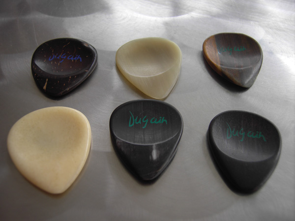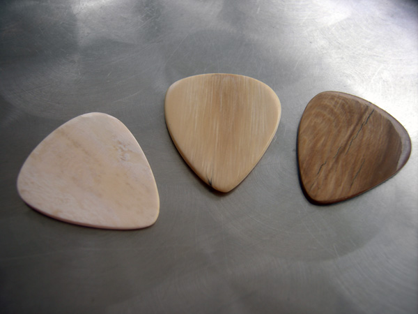 Die neueste Alternative für die Tricone und vielleicht auch für die Akustik ist im Moment eins der Mammut-Elfenbeinplektren, die Jonas organisiert hat: