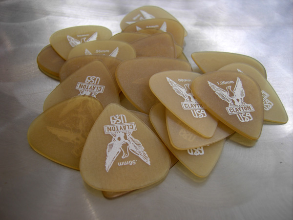 Irgendwann schien es ja auch bei den aussensaitern immer wieder einen "flavor of the month" (fotm) zu geben, sei es Line6 Pod, Reussenzehn Daniel D., Okko Diablo usw. zu geben und hin und wieder waren das auch mal Plektren. Ich glaube unsere ersten fotm-Plektren waren die Clayton Ultems, da habe ich natürlich auch zugeschlagen, das ganze Sortiment: