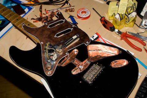 Aber ich habe vor ein paar Jahren sämtliche Hohlräume mit Kupferfolie ausgekleidet und auf Masse gelegt - sozusagen einen faradayschen Käfig für die gesamte Elektronik gelötet - siehe Bild
