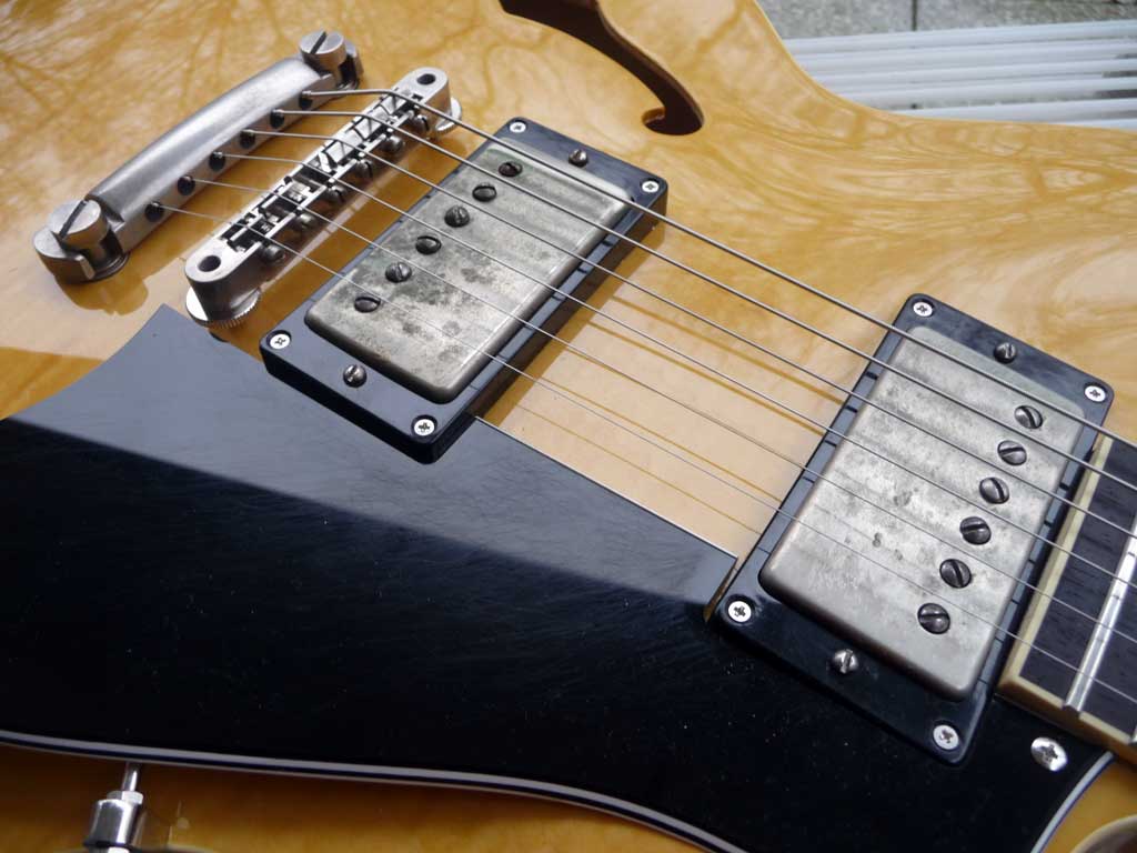 Vor zwei Wochen hatte ich sie hier vorgestellt und ich hatte schon so ein bisschen das Gefühl, dass ihre Pickups und ich vielleicht keine allzu lange Beziehung haben würden. Also habe ich sie zuerst ein paar mal mit der Band eingesetzt und auch wenn die Pickups nicht mies sind, so sind sie nicht das was ich gerne in dieser Gitarre hätte.