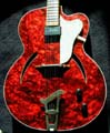 Danach schnell alles verdrahtet, noch ein altes Pickguard drauf, welches das Kabel des PU, das in das untere F-Loch geht, verdeckt, dann alles wieder montiert und das Ergebnis sieht so aus: