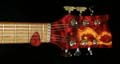 Ach ja, ein Plektrum habe ich mir direkt auch noch gemacht, ich hatte etwas mehr Perloid gekauft, als ich brauchte. Klingt btw. garnicht mal schlecht. :-)) Auf den beiden Bildern kann man mal wieder sehen, wie sehr das Perloid - je nach Lichteinfall - der Kamera einen Streich spielt, denn Flammen gibt es in Wirklichkeit nicht, auch wenn es auf dem rechten Bild so scheint. :-)))