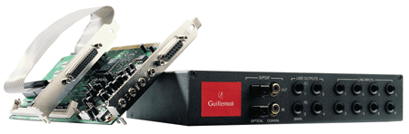 Eine Zusatzkarte, die sogenannte Daughter-Card, wird mit der eigentlichen Soundkarte per Flachbandkabel verbunden. Die Daughter-Card wird dann erneut per Kabel mit dem externen Audio-Rack verbunden. Das Audio-Rack ist die Besonderheit des ganzen Paketes. Es bietet 8 analoge Eingänge, 4 analoge Ausgänge, einen digitalen S/PDIF-Eingang und Ausgang sowie zwei optische Verbindungen für die verlustfreie Übertragung Eurer Musikkreationen. Außerdem bietet das externe Rack einen MIDI-In, einen MIDI-Out und einen MIDI-Thru DIN-Anschluß."