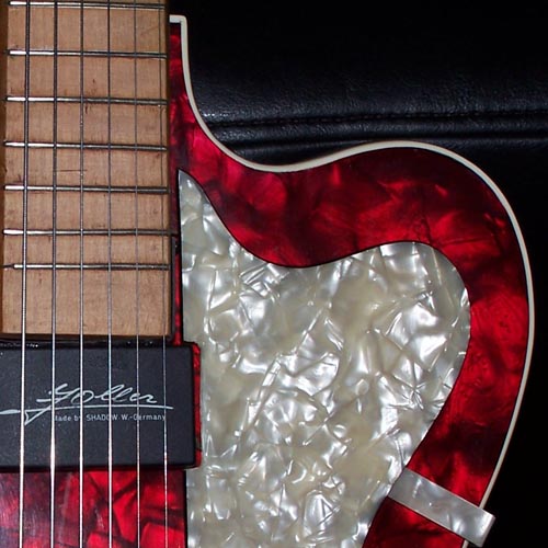 Übrigens müßte Pearly eigentlich unbedingt mal zum Gitarrenbauer, denn sie braucht dringend neue Bünde. Die alten stehen an manchen Stellen raus, dann gibt es einige tiefe Kerben und meine "verschönerte" Kopfplatte muß auch noch mal nachgearbeitet werden, da muß wohl wahrscheinlich ein Binding dran.